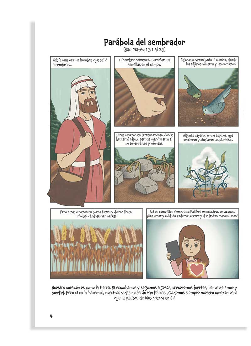 ¡Descubre el amor de Jesús a través de sus parábolas! En este libro, encontrarás 12 historias que te enseñarán sobre la importancia de la fe, la compasión y la obediencia. Cada parábola viene con una página para colorear, para que puedas expresar tu creatividad y hacer que la historia cobre vida. ¡Aprende de Jesús y deja que su amor te envuelva!